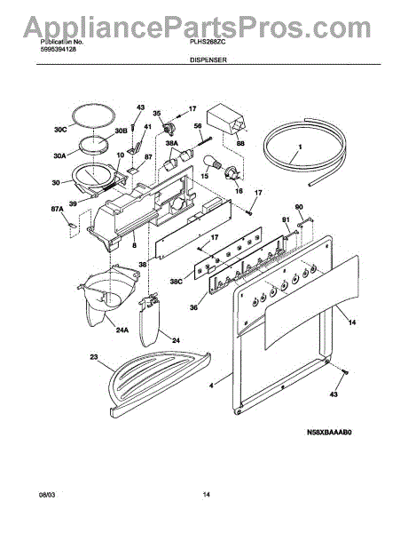 The Ice Chute Door Insulation is an OEM replacement part for Frigidaire refrigerators. It is installed on the ice chute door to prevent warm air infiltration and moisture buildup around the ice dispenser. Causes may include compression or cracking of insulating foam/material from normal use stress. Spills exposing it to liquid are also damaging. Symptoms of defective insulation consist of: