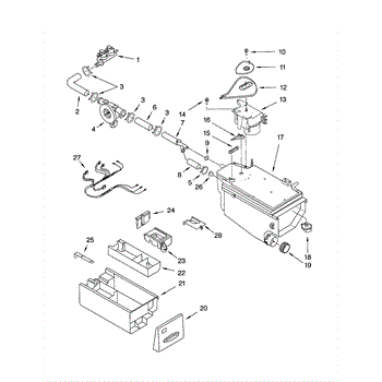 The Washer Detergent Container is an OEM replacement part for Whirlpool washers. It fits securely inside the dispenser drawer and is compartmentalized to hold detergent, fabric softener, and bleach. This container ensures the proper distribution of each cleaning agent during the wash cycle for optimal cleaning performance.