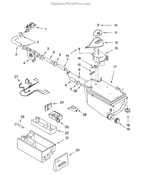 The Detergent Drawer is an OEM part for Whirlpool washing machines. It is responsible for holding and dispensing detergent and fabric softener during the wash cycle. The drawer ensures that the right amount of detergent is released at the appropriate time for optimal cleaning performance.
