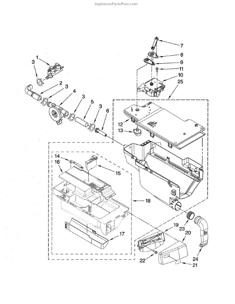 The Dispenser Actuator is an OEM part for Whirlpool washing machines. It is responsible for controlling the release of detergent and fabric softener during the wash cycle, ensuring that these cleaning agents are dispensed at the correct times.