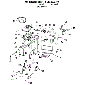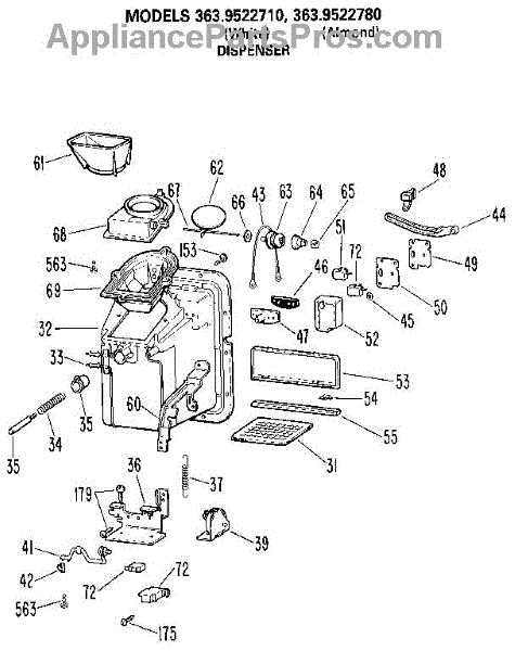Parts for Kenmore 363.9522710 (3639522710, 363 9522710): Dispenser Parts