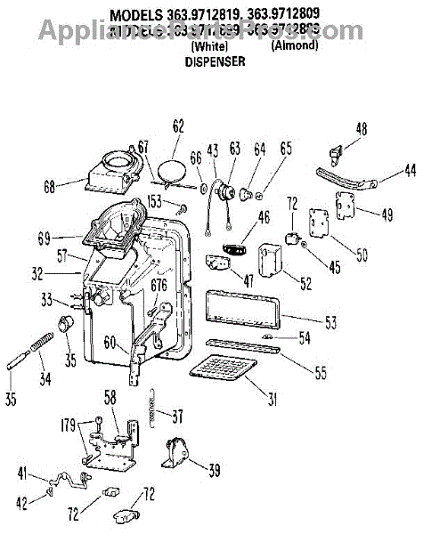 Parts for Kenmore 363.9712889 (3639712889, 363 9712889): Dispenser Parts