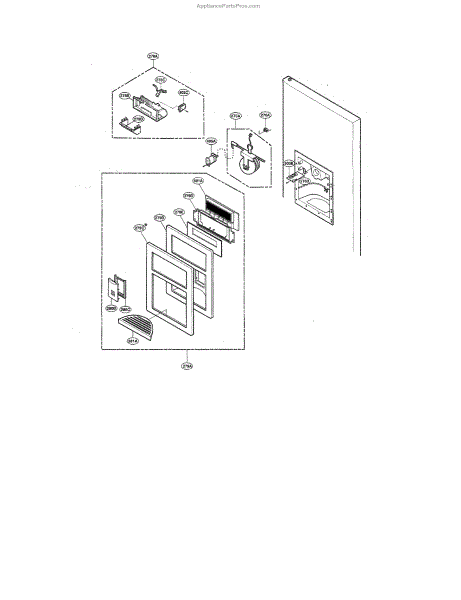 The Ice Chute Door is an OEM part for LG refrigerators. It is located in the ice dispenser area on the front of the refrigerator. It opens and closes automatically when ice is dispensed, ensuring a controlled release of ice cubes or crushed ice into the user's glass or container. The door helps to prevent frost buildup, maintain proper insulation, and protect the ice inside the dispenser.