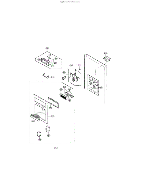The Dispenser Micro Switch is an OEM part for LG refrigerators. It is a component of the ice and water dispensing system, responsible for activating the dispenser when the lever is pressed.