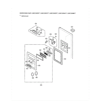 The Dispenser Micro Switch is an OEM part for LG refrigerators. It is a component of the ice and water dispensing system, responsible for activating the dispenser when the lever is pressed.