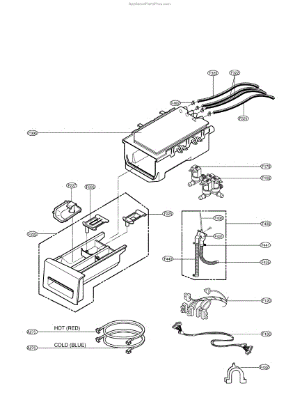 The Dispenser Assembly is an OEM part for LG front-loading washers. It is responsible for dispensing detergent and fabric softener at the appropriate times during the wash cycle. The dispenser assembly contains separate compartments for detergent and fabric softener, as well as timed mechanisms that release each additive when needed for cleaning and softening results.