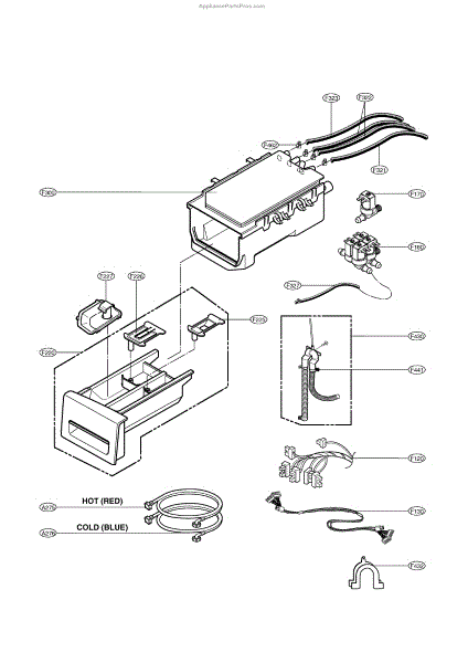 The Dispenser Assembly is an OEM part for LG front-loading washers. It is responsible for dispensing detergent and fabric softener at the appropriate times during the wash cycle. The dispenser assembly contains separate compartments for detergent and fabric softener, as well as timed mechanisms that release each additive when needed for cleaning and softening results.