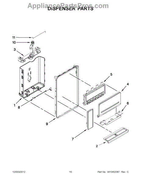 This dispenser trim is the exterior bezel that finishes the refrigerator dispenser opening, restoring a clean appearance and helping align the dispenser components for smooth operation. What it does: