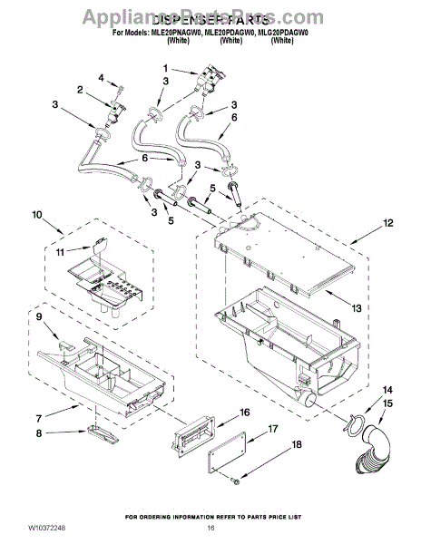 Parts for Maytag MLE20PDAGW0: 10 - Dispenser Parts