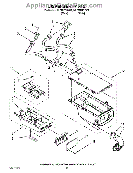 The Dispenser Hose is an OEM replacement part for Whirlpool washing machines. This hose is integral in the detergent dispensing system, channeling liquid detergent and other washing agents from the dispenser to the wash drum. It ensures that cleaning agents are efficiently delivered to the laundry load at the appropriate time during the wash cycle.