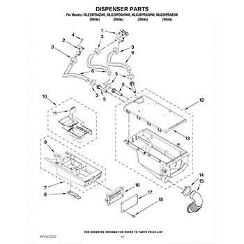 Causes for a malfunctioning Dispenser Hose can include blockages from accumulated detergent residue, cracks or holes in the hose, or issues with the connectors that attach it to the dispenser and drum.