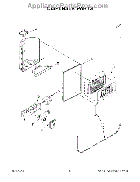 The Dispenser Pad is an OEM part for Whirlpool refrigerator dispensers. It attaches under the dispenser lever to activate water and ice functions with light finger pressure.