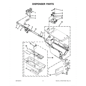 This funnel directs liquid fabric softener and bleach from the dispenser into the wash tub to ensure proper dispensing and reduce splashing. Fits into the washer dispenser assembly to restore correct chemical flow during cycles. What it does: