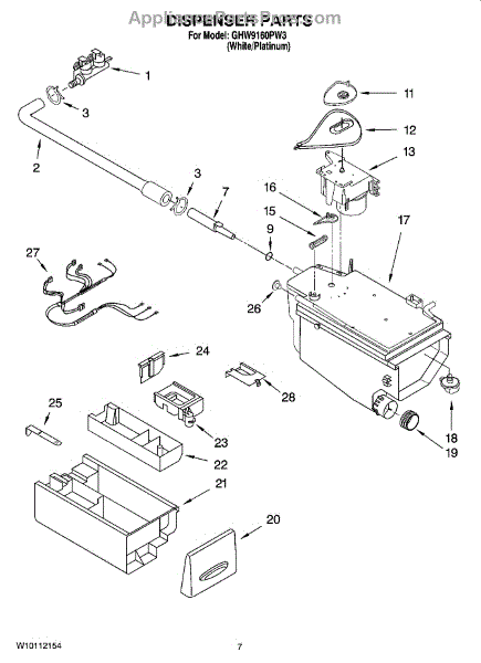 Parts for Whirlpool GHW9160PW3: 04 - Dispenser Parts