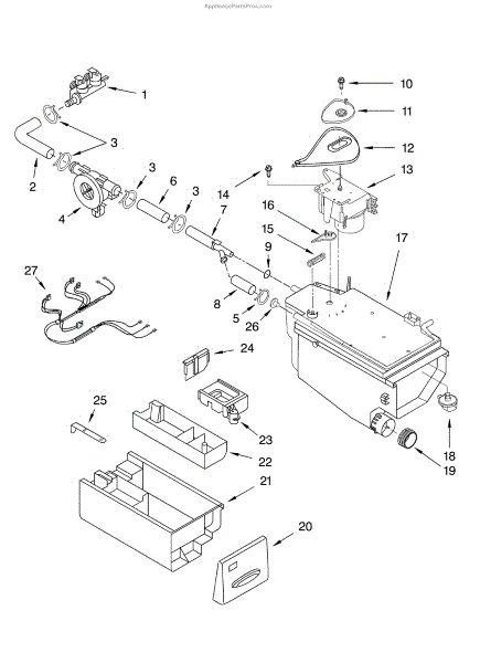 The Washer Detergent Container is an OEM replacement part for Whirlpool washers. It fits securely inside the dispenser drawer and is compartmentalized to hold detergent, fabric softener, and bleach. This container ensures the proper distribution of each cleaning agent during the wash cycle for optimal cleaning performance.
