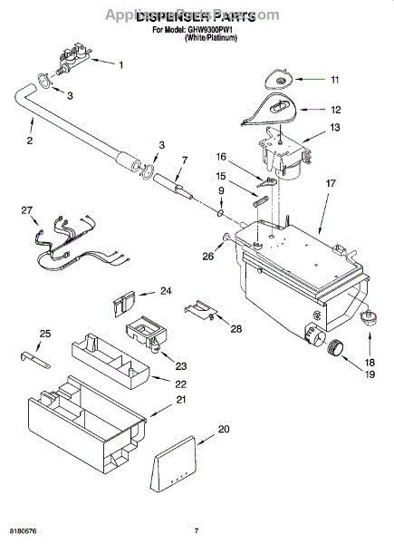 Parts for Whirlpool GHW9300PW1: 04 - Dispenser Parts