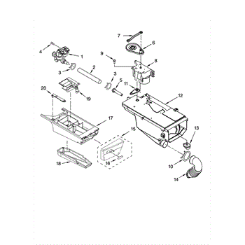 This siphon routes liquid bleach and fabric softener from the dispenser into the washer tub so additives are delivered at the correct time in the cycle. Replacing a faulty siphon restores proper dispensing and helps prevent leaks or staining. What it does: