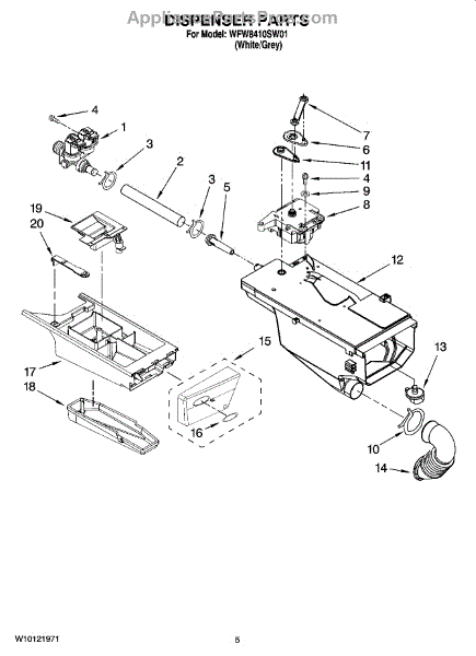 Parts for Whirlpool WFW8410SW01: 04 - Dispenser Parts
