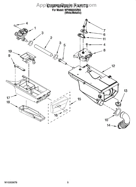 Parts for Whirlpool WFW8500SR03: 04 - Dispenser Parts