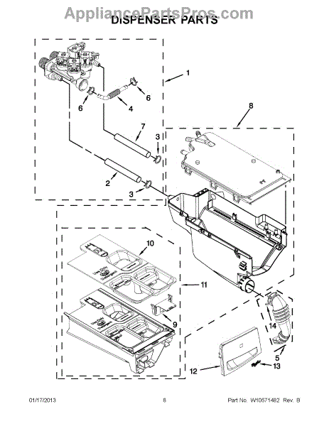 The Washer Dispenser Assembly is an OEM part for Whirlpool washing machines. It is responsible for dispensing the detergent and fabric softener at the appropriate times during the wash cycle. This assembly ensures that cleaning agents are released properly, contributing to effective and efficient washing performance.