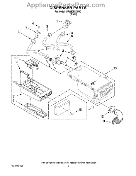 The Dispenser Hose is an OEM replacement part for Whirlpool washing machines. This hose is integral in the detergent dispensing system, channeling liquid detergent and other washing agents from the dispenser to the wash drum. It ensures that cleaning agents are efficiently delivered to the laundry load at the appropriate time during the wash cycle.