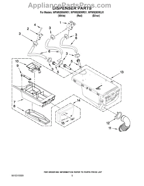 Parts for Whirlpool WFW9250WR01: 04 - Dispenser Parts