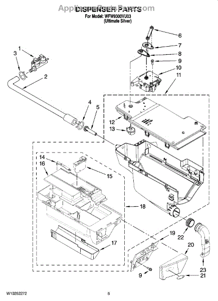 This dispenser drawer slides into the washer's dispenser housing and holds detergent and laundry additives for each cycle. Replace a cracked, stuck, or missing drawer to restore smooth operation and proper dispensing. What it does: