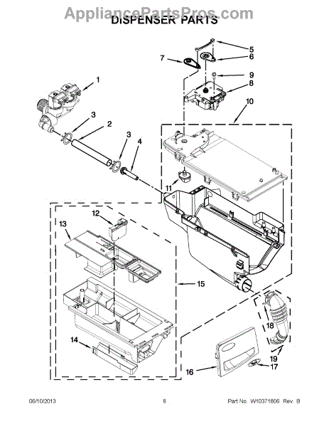 The Dispenser Actuator is an OEM part for Whirlpool washing machines. It is responsible for controlling the release of detergent and fabric softener during the wash cycle, ensuring that these cleaning agents are dispensed at the correct times.