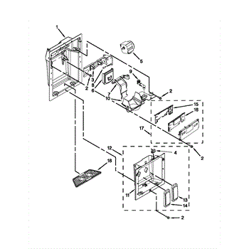 This dispenser user interface assembly is the touch-control module at the door dispenser that lets you select water, cubed/crushed ice, light, and lock. Replacing a failed UI restores proper button response and indicator display.