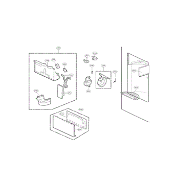 The Dispenser Ice Chute Door is an OEM part for LG side-by-side refrigerators featuring exterior ice and water dispensers. This door guides ice from the storage bin to the access port.