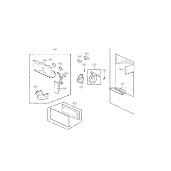 The Dispenser Ice Chute Door is an OEM part for LG side-by-side refrigerators featuring exterior ice and water dispensers. This door guides ice from the storage bin to the access port.