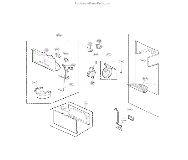 The LG cap assembly is an OEM replacement part responsible for controlling the opening and closing of the ice dispenser chute on an LG refrigerator. The ice dispenser door assembly is specifically designed to cover and protect the ice dispenser chute, ensuring that ice is dispensed only when desired.