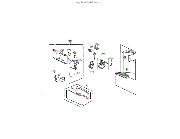 The LG cap assembly is an OEM replacement part responsible for controlling the opening and closing of the ice dispenser chute on an LG refrigerator. The ice dispenser door assembly is specifically designed to cover and protect the ice dispenser chute, ensuring that ice is dispensed only when desired.