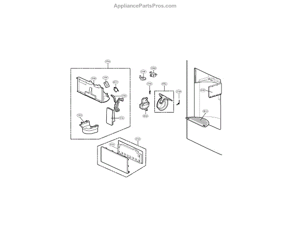 The LG cap assembly is an OEM replacement part responsible for controlling the opening and closing of the ice dispenser chute on an LG refrigerator. The ice dispenser door assembly is specifically designed to cover and protect the ice dispenser chute, ensuring that ice is dispensed only when desired.