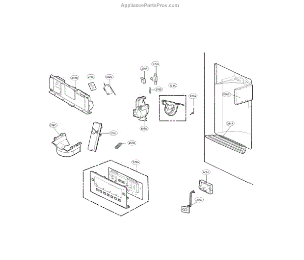 The LG cap assembly is an OEM replacement part responsible for controlling the opening and closing of the ice dispenser chute on an LG refrigerator. The ice dispenser door assembly is specifically designed to cover and protect the ice dispenser chute, ensuring that ice is dispensed only when desired.