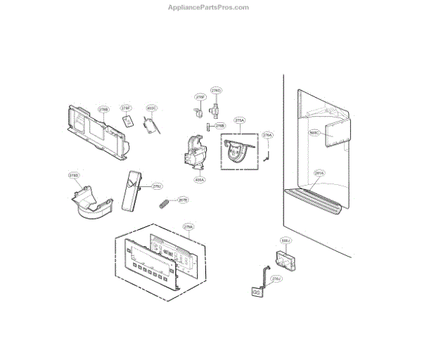 The LG cap assembly is an OEM replacement part responsible for controlling the opening and closing of the ice dispenser chute on an LG refrigerator. The ice dispenser door assembly is specifically designed to cover and protect the ice dispenser chute, ensuring that ice is dispensed only when desired.