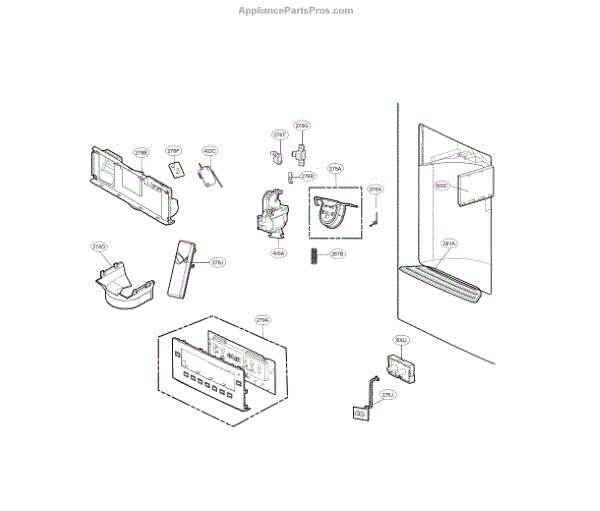 The LG cap assembly is an OEM replacement part responsible for controlling the opening and closing of the ice dispenser chute on an LG refrigerator. The ice dispenser door assembly is specifically designed to cover and protect the ice dispenser chute, ensuring that ice is dispensed only when desired.
