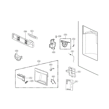 The Dispenser Micro Switch is an OEM part for LG refrigerators. It is a component of the ice and water dispensing system, responsible for activating the dispenser when the lever is pressed.