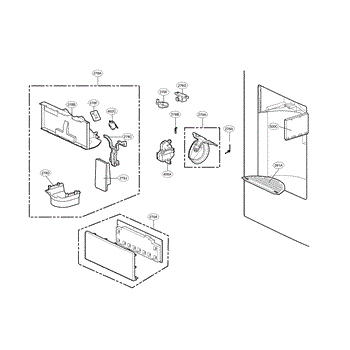Spring for the ice door lever mechanism in your refrigerator's dispenser. Replace if the spring is stretched, broken, or missing and the ice door won't stay closed.