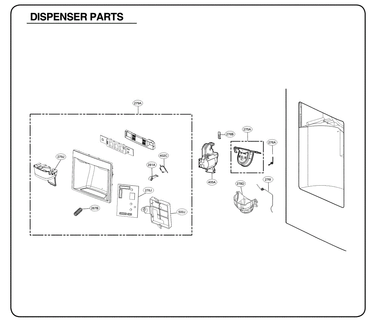 The Dispenser Micro Switch is an OEM part for LG refrigerators. It is a component of the ice and water dispensing system, responsible for activating the dispenser when the lever is pressed.
