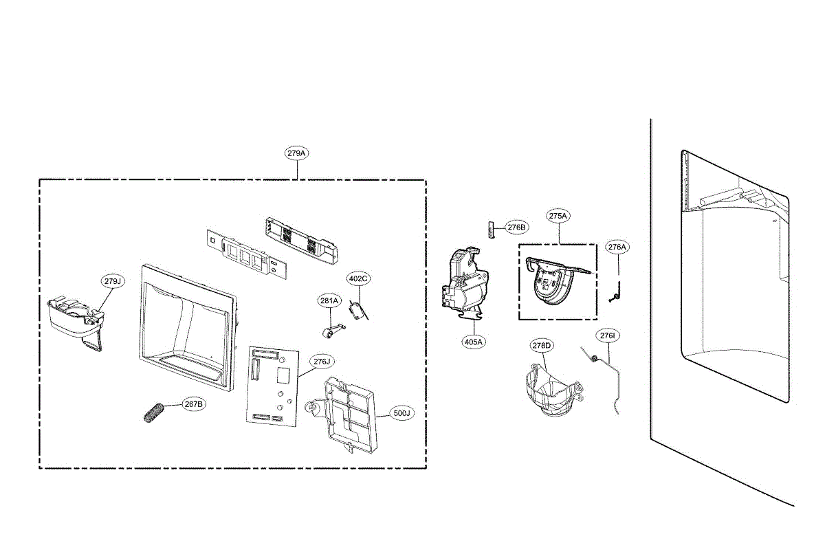 Parts for Kenmore 795.74043412 (79574043412, 795 74043412): Dispenser Parts