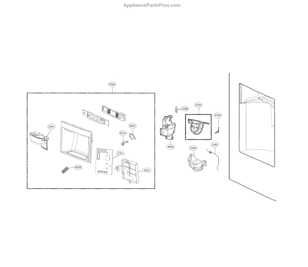 Controls ice dispenser door opening and closing. Replace if door won't open, stays open, or motor makes no sound when dispensing. Mounts behind dispenser trim.