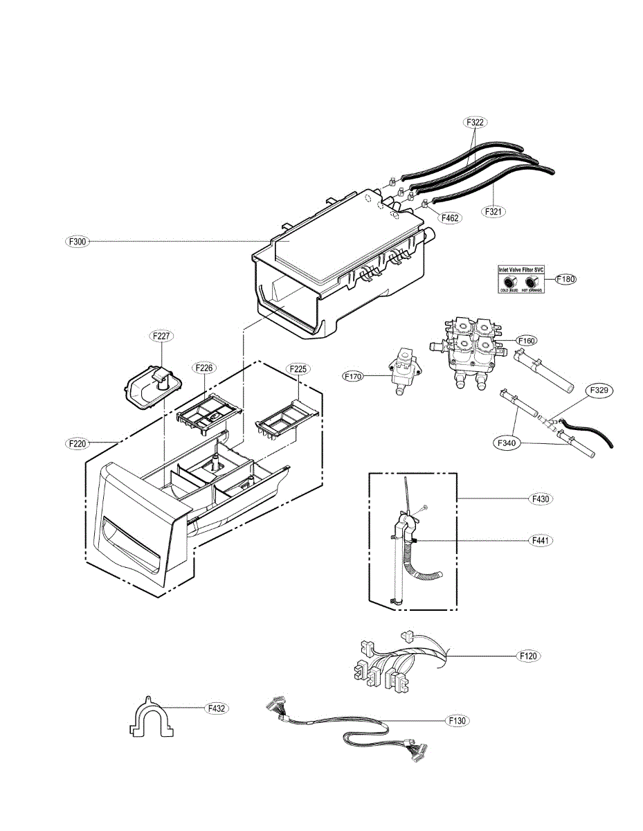 The Detergent Box Assembly is an OEM replacement part for LG washing machines. This assembly is responsible for holding and dispensing detergent and other laundry additives during the wash cycle. It ensures that the correct amounts of detergent, bleach, and fabric softener are released at the appropriate times, contributing to effective cleaning and care of your clothes.