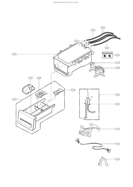 The Detergent Box Assembly is an OEM replacement part for LG washing machines. This assembly is responsible for holding and dispensing detergent and other laundry additives during the wash cycle. It ensures that the correct amounts of detergent, bleach, and fabric softener are released at the appropriate times, contributing to effective cleaning and care of your clothes.