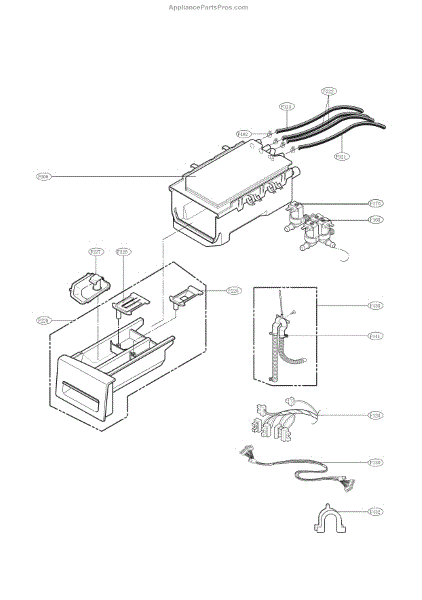 The Detergent Box Assembly is an OEM replacement part for LG washing machines. This assembly is responsible for holding and dispensing detergent and other laundry additives during the wash cycle. It ensures that the correct amounts of detergent, bleach, and fabric softener are released at the appropriate times, contributing to effective cleaning and care of your clothes.