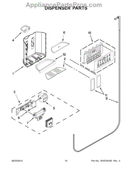Fix a dispenser that won't stop running or doesn't respond when pressed. This actuator pad acts as the switch to control water and ice dispensing.