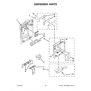 This dispenser user interface assembly is the touch-control module at the door dispenser that lets you select water, cubed/crushed ice, light, and lock. Replacing a failed UI restores proper button response and indicator display.