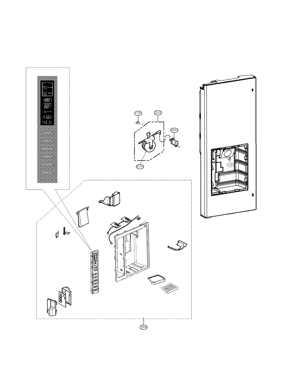 Mounting bracket that supports the dispenser paddle behind your refrigerator's front panel. Replace if cracked, broken, or lever feels loose or misaligned.