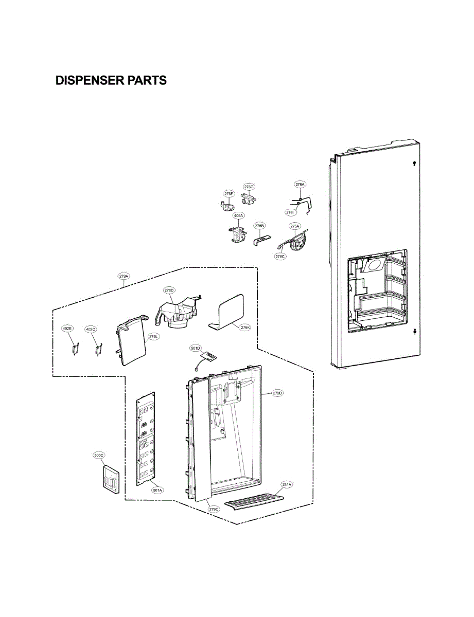 Mounting bracket that supports the dispenser paddle behind your refrigerator's front panel. Replace if cracked, broken, or lever feels loose or misaligned.