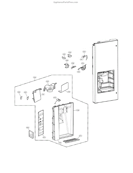 Mounting bracket that supports the dispenser paddle behind your refrigerator's front panel. Replace if cracked, broken, or lever feels loose or misaligned.